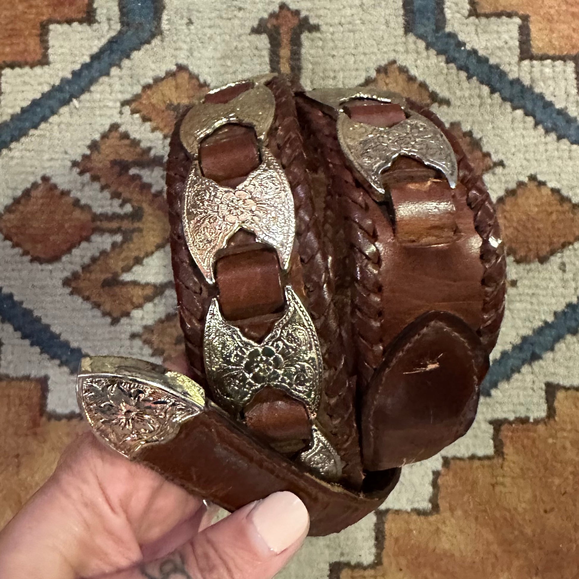 Belt Leather and Silver 34